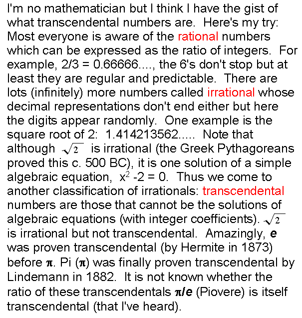 So what is Piovere? It's the ratio of the two most famous transcendental numbers; it's pi over e.